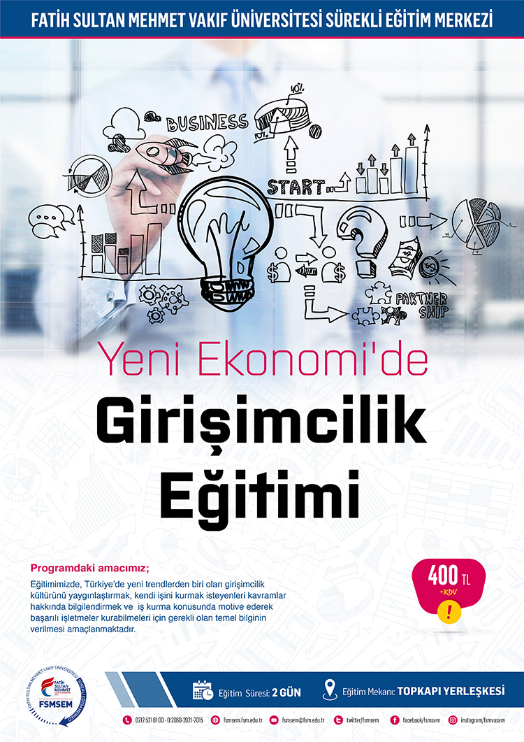 Eğitimimizde, Türkiye’de yeni trendlerden biri olan girişimcilik kültürünü yaygınlaştırmak, kendi işini kurmak isteyenleri kavramlar hakkında bilgilendirmek ve iş kurma konusunda motive ederek başarılı işletmeler kurabilmeleri için gerekli olan temel bilginin verilmesi amaçlanmaktadır.